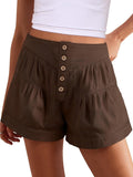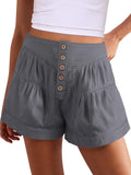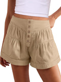 Women's Summer Baggy Flowy Wide Leg Buttons Pleated Denim Shorts