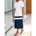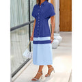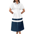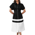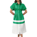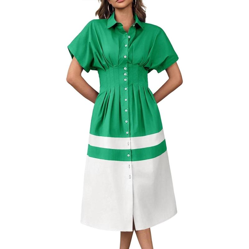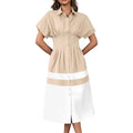 Womens Summer Button Down Shirt Dress Casual Color Block V Neck Short Sleeve
