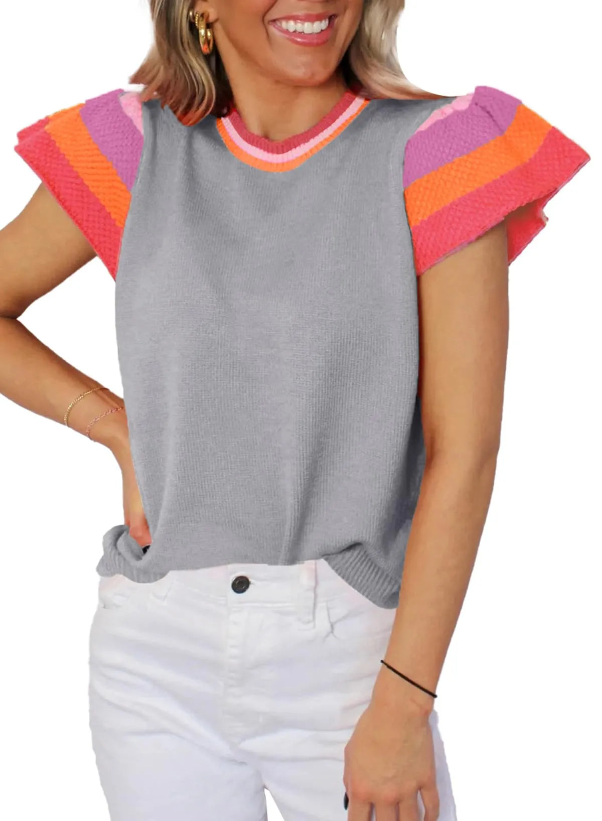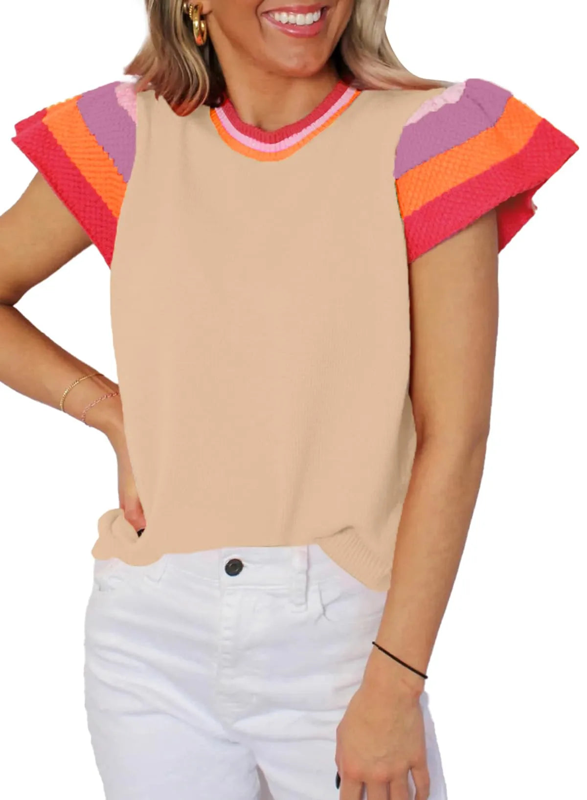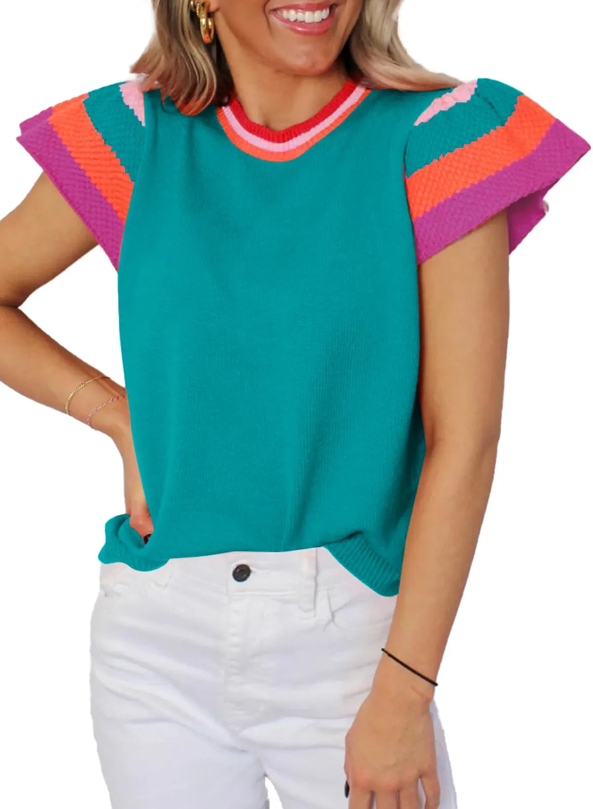 This stylish and chic top is made of high-quality fabric, breathable and light, soft and skin-friendly. It can be paired with shorts, jeans, leggings to show your charming charm. The cap sleeve sweater can also be easily paired with handbags, earrings and boots to create an elegant summer street look.