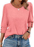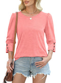 Women's Summer Casual 3/4 Sleeve with Buttons Dressy Blouses