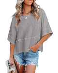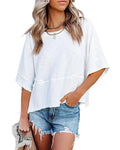 Women's Summer Casual Crewneck Batwing Half Sleeve Tee