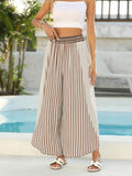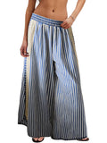 Women's Summer Casual Loose Striped Lace Patchwork Wide Leg Pants