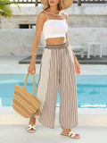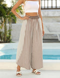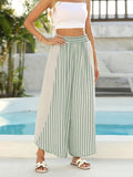 Elevate your summer wardrobe with the this casual loose lounge pants– a perfect blend of style and comfort! Our striped wide-leg pants with side lace accents for a chic summer look, while the flowy silhouette and split hem keep you cool in hot weather. Whether you're lounging at home or exploring a new city, the wide-leg pants adapt effortlessly to your lifestyle.