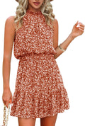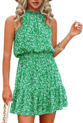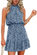 Women's Summer Floral Printing Bohemian Halter Neck Sleeveless Chiffon Dress