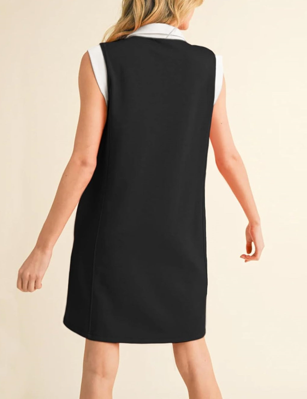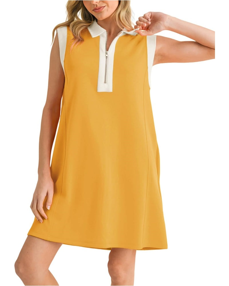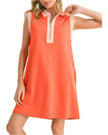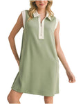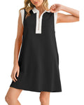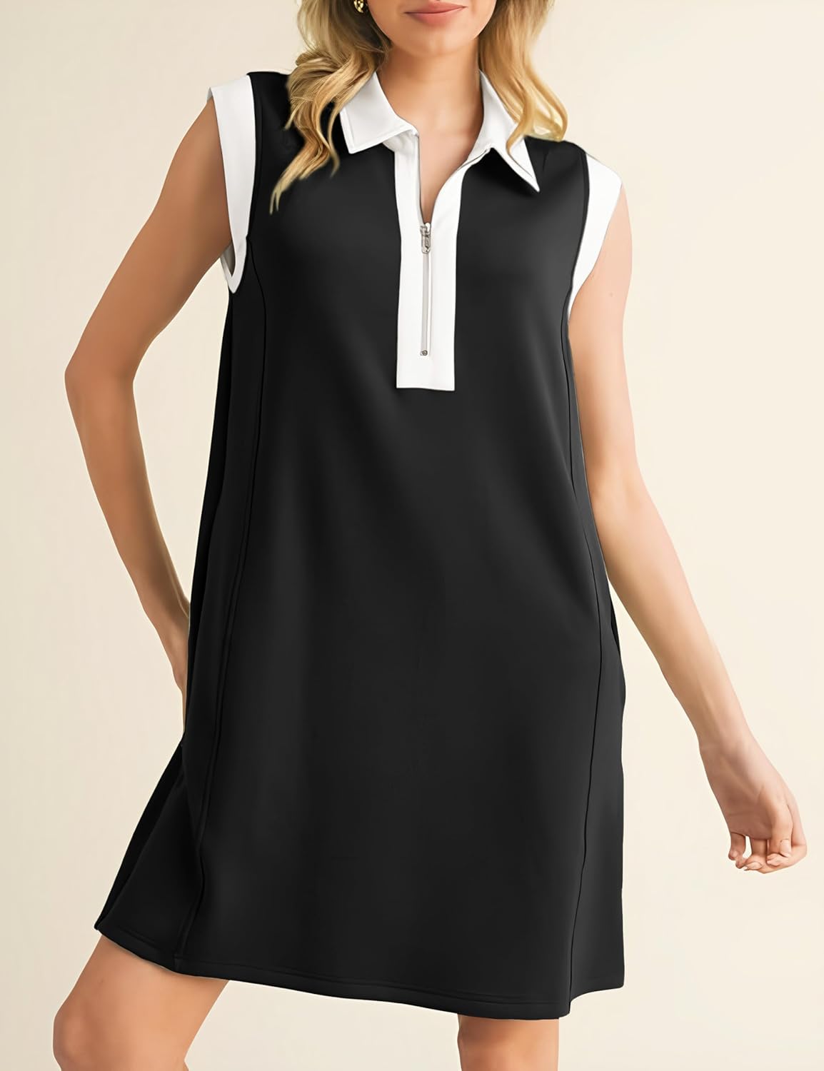 Women's Summer Half Zip Colorblock Sleeveless Sweatshirt Dress