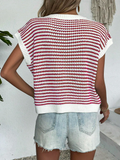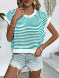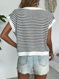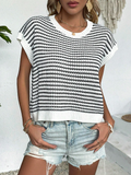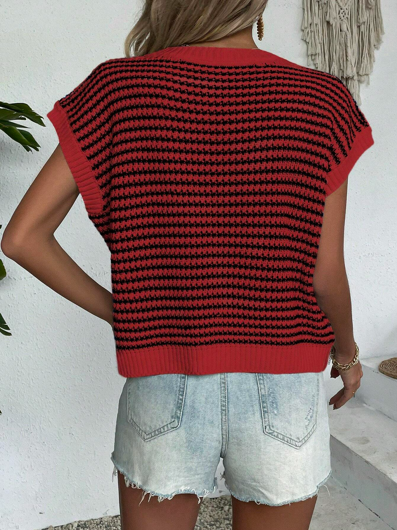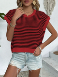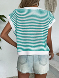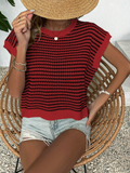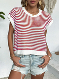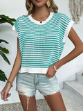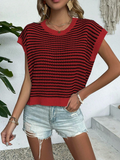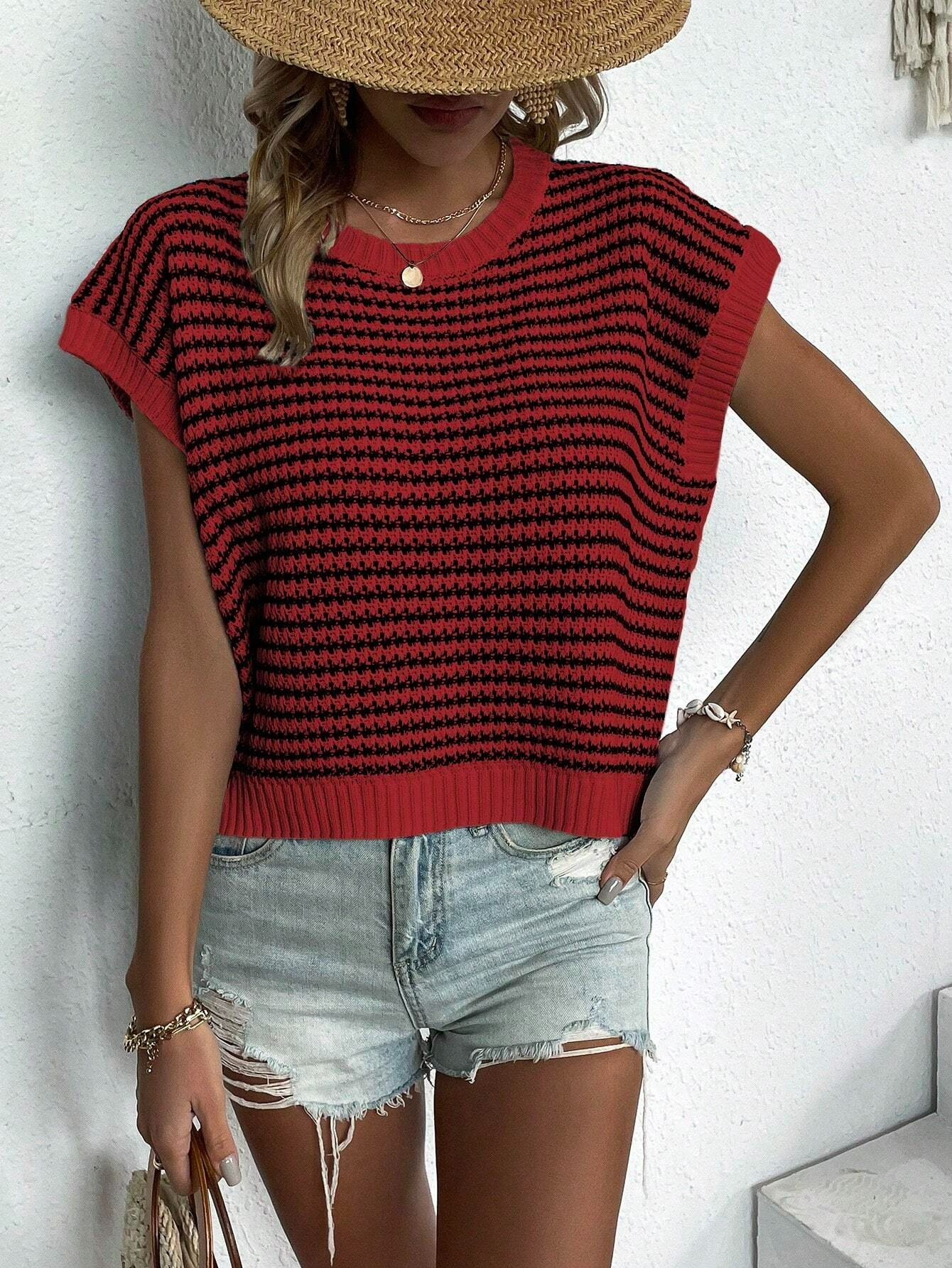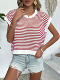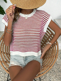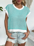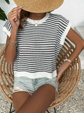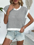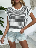 Crafted from a lightweight knit material, this pullover top ensures maximum comfort and breathability during warmer months.Designed with a relaxed, slightly oversized fit, comfortable and flattering drape.This knitted sweater features a cropped length and striped pattern, perfect for a casual yet chic summer look.