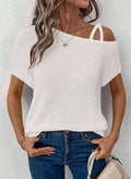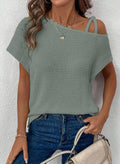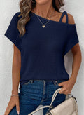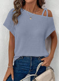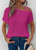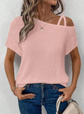 Women's Summer Off-Shoulder Waffle Knit Short Sleeve Top
