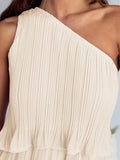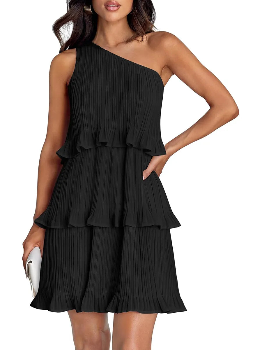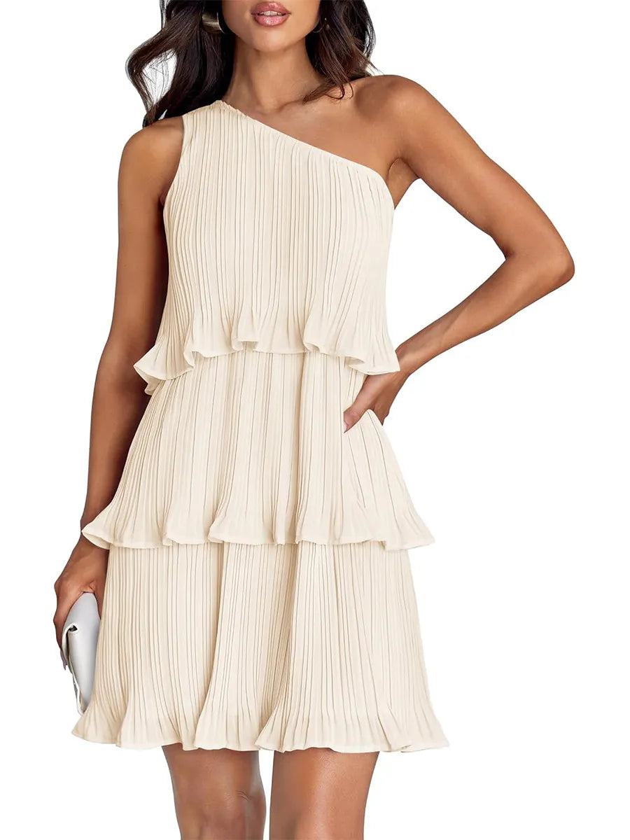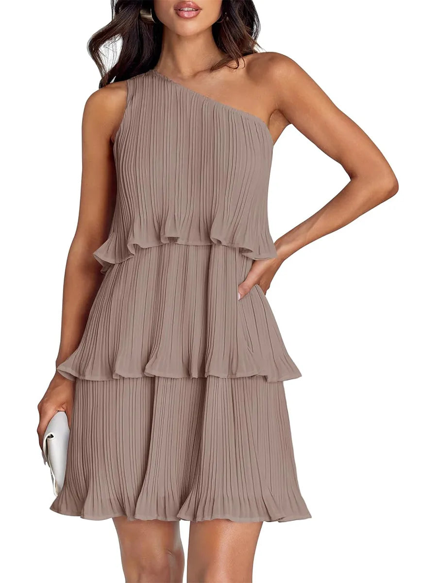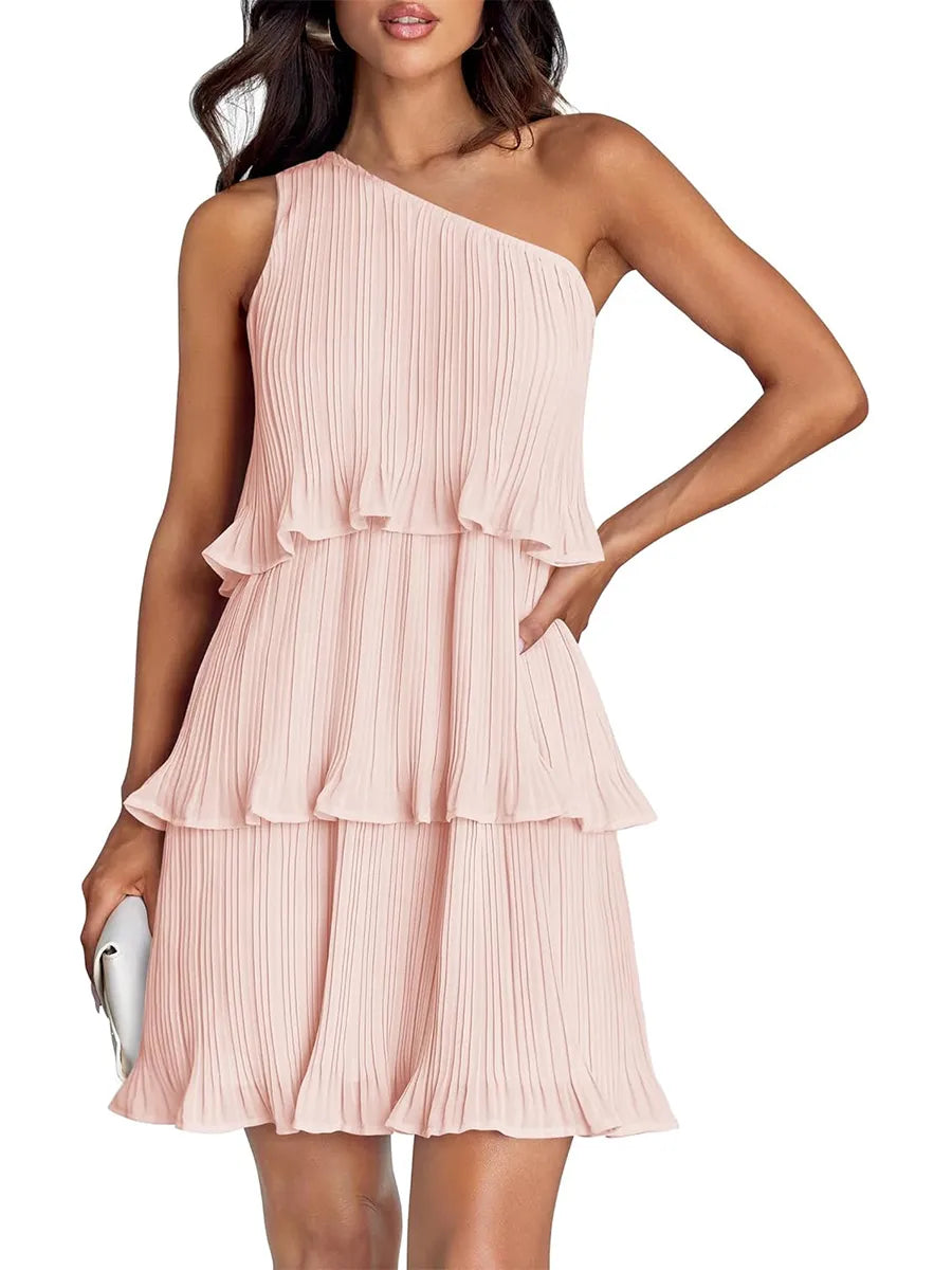 Women's Summer One Shoulder Ruffle Tiered Layered Chiffon Flowy A Line Dress