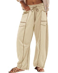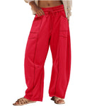 Women's Summer Pants Drawstring Casual Wide Leg Sports Pants