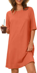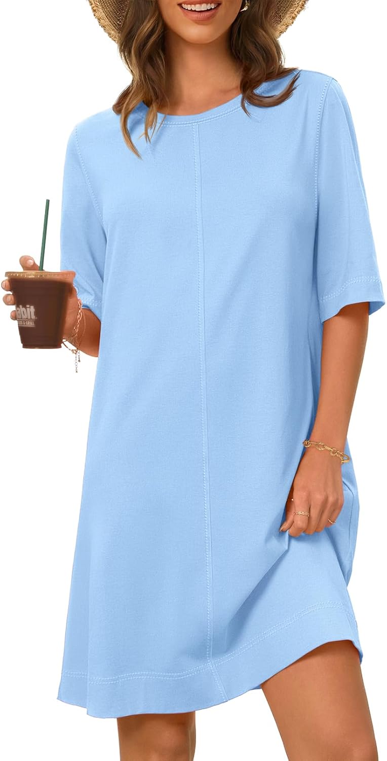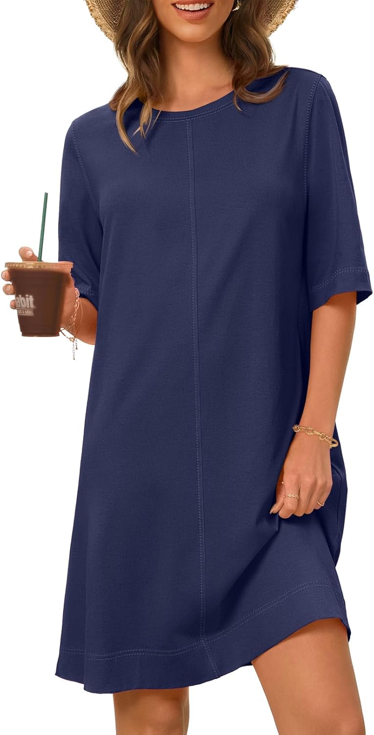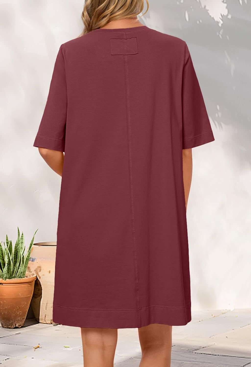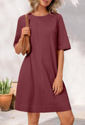 Women's Summer Short Sleeve Crewneck T-shirt Dress with Pockets