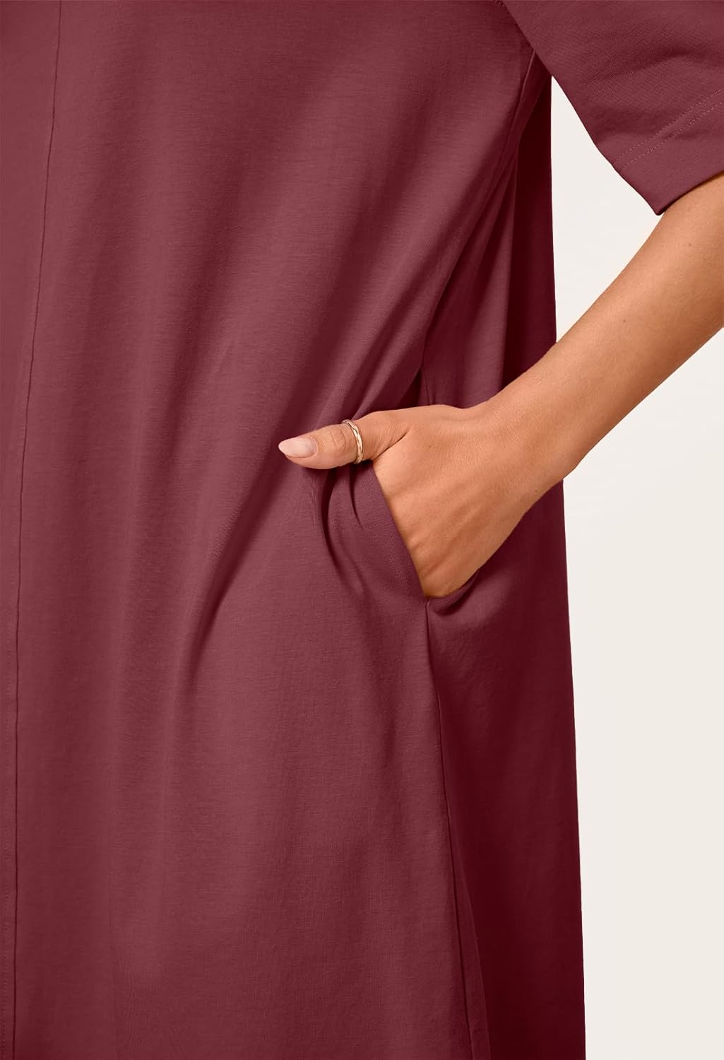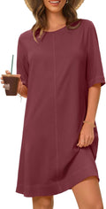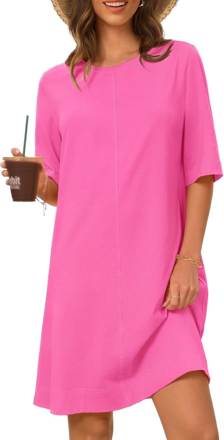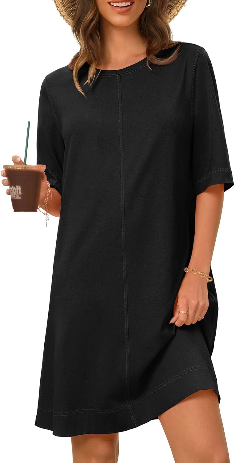 Women's Summer Short Sleeve Crewneck T-shirt Dress with Pockets