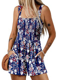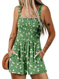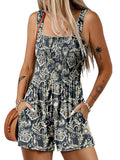 Women's Summer Square Neck Sleeveless Loose Casual Shorts Smocked Rompers