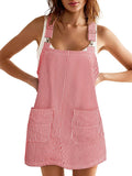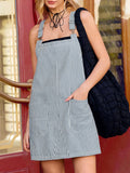 Women's Summer Striped Adjustable Straps Denim Overall Dress with Pockets