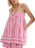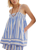 Women's Summer Striped Two Piece Ruffle Camisole and Wide Leg Shorts Set