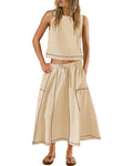 Women's Summer Vacation Sleeveless Tank Top Skirt Two Piece Set with Pockets