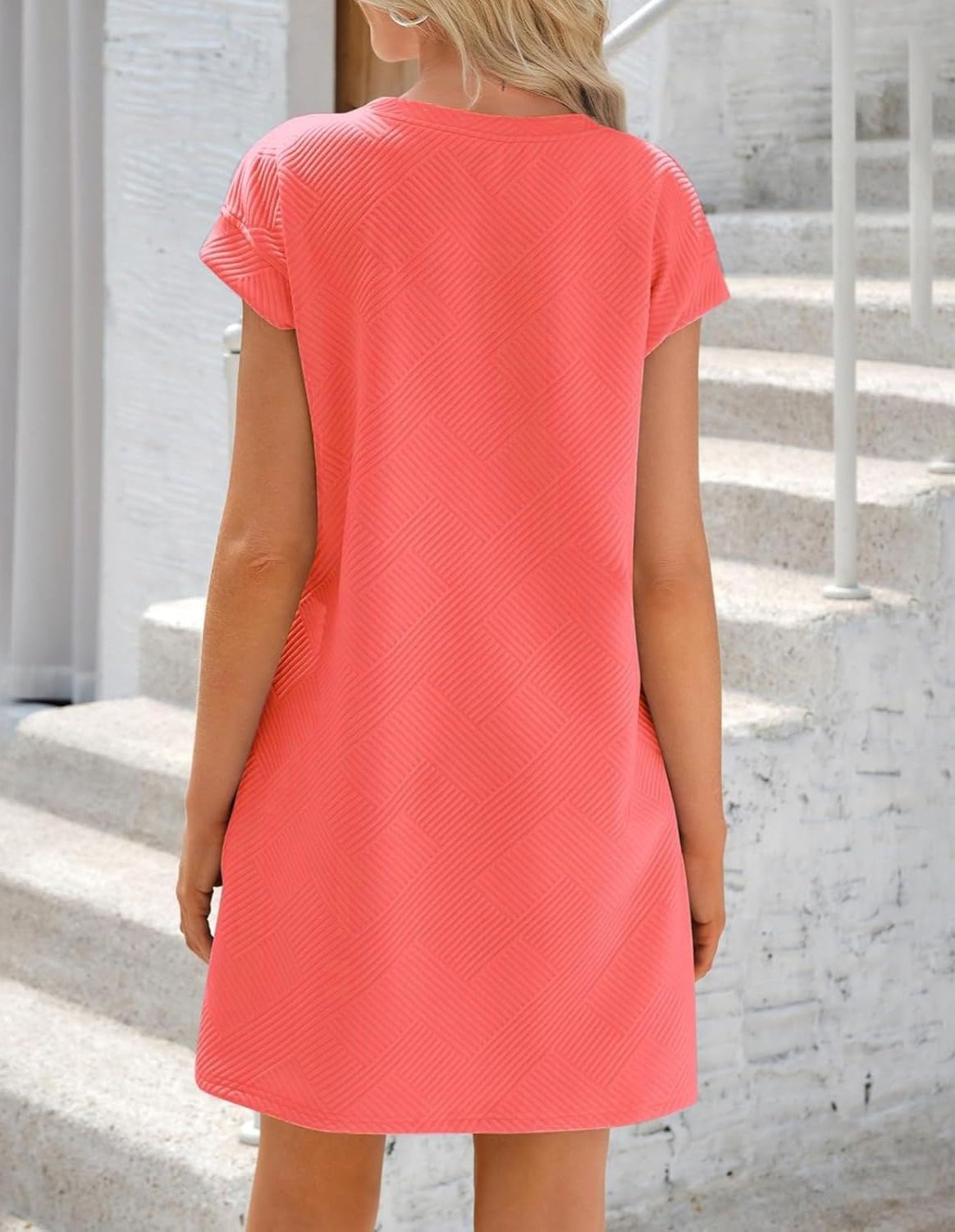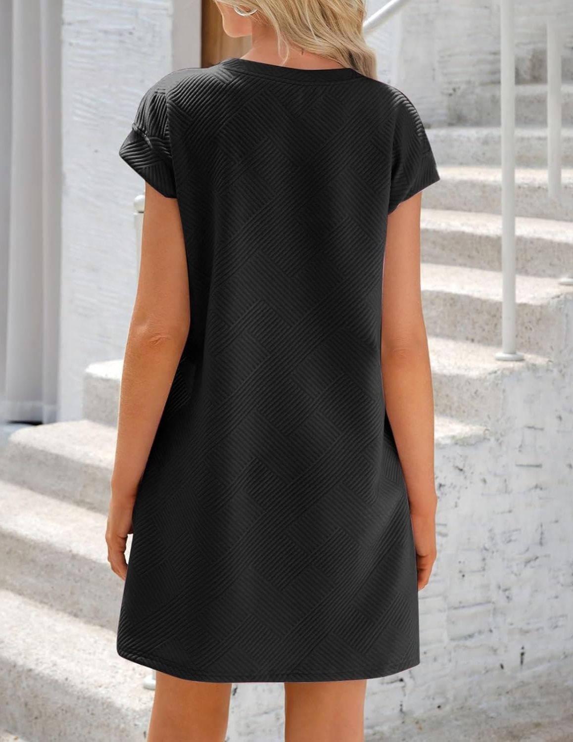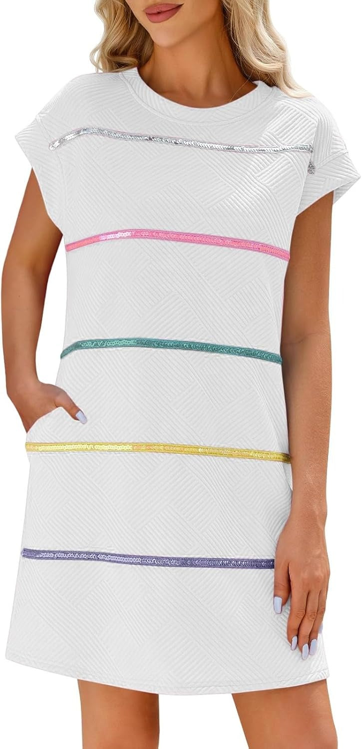 Women's Textured Sequin Cap Sleeve T-Shirt Dress with Pockets
