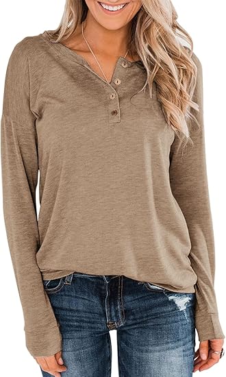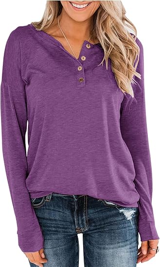 This cute v-neck long sleeve button up top is suitable for casual, party, work, date, school, sports, vacation, street wear or casual everyday wear, it is a great gift idea for christmas, for holidays the soft breathable fabric of women long sleeve top is very comfortable to against your skin. Multi-solid color for you to choose, trendy and elegant. The women long sleeve henley shirt is easy to pair with coat, jeans, leggings, shorts, skinny pants and sexy heels or boots or a decent look. Basic, yet flattering and elegant style.