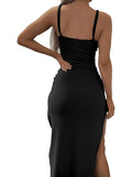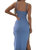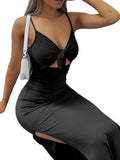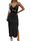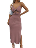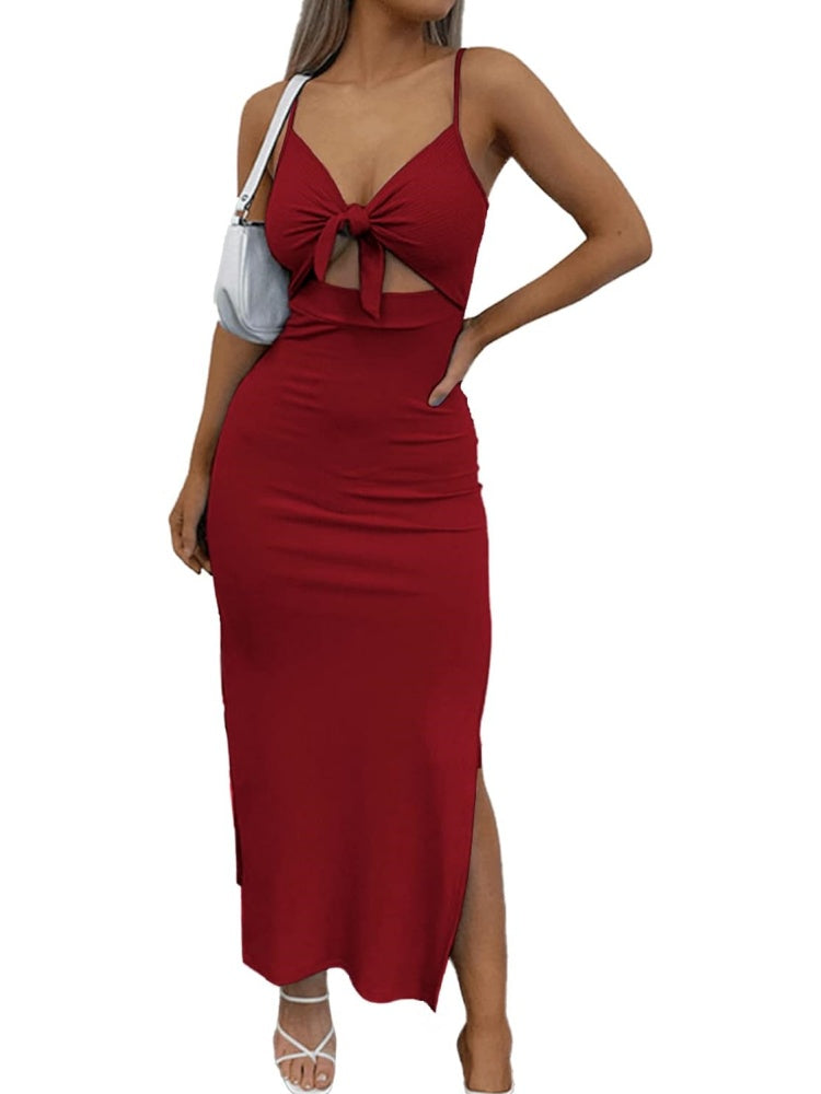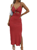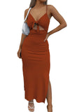 Women's Tie Knot Cut Out Side Split Hem Sleeveless Knit Bodycon Maxi Dress