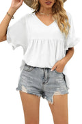 Womens Tops Casual V Neck Ruffle Sleeve T Shirts Babydoll Loose Fit Peplum Tops