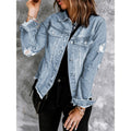 Women's Unique Raw Hem Long Sleeves Denim Jackets