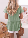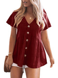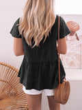 Women's V Neck Button Down Ruffle Hem Short Sleeve Babydoll Peplum Tops