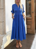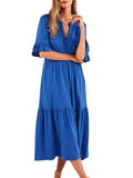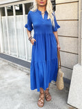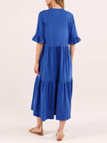 Women's V Neck Casual A Line Loose Tiered Long Dresses