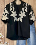 Elevate your everyday style with this Floral Embroidery T-Shirt. Delicate embroidery and charming puff sleeves add a feminine touch, making it perfect for pairing with your favorite jeans or skirts.