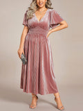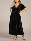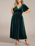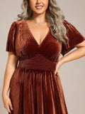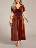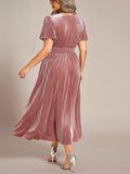 Women's V-Neck Short Sleeve Pleated Velvet Dress