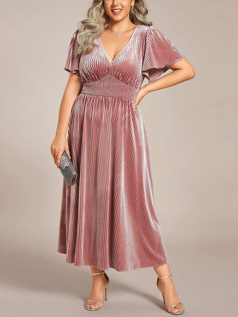 Step into the spotlight and exude confidence and grace in this stunning velvet dress. The V-neckline and A-line silhouette create a flattering and feminine look, while the pleated velvet fabric lends a touch of sophistication. Perfect for formal events, this dress is ideal for wedding guests who want to make a statement.
