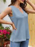 Womens V Neck Waffle Knit Summer Casual Sleeveless Loose Tank Tops