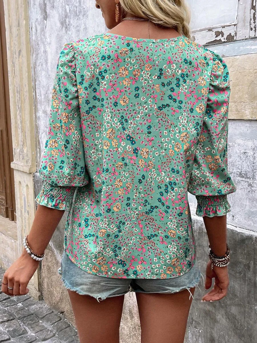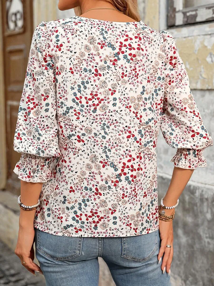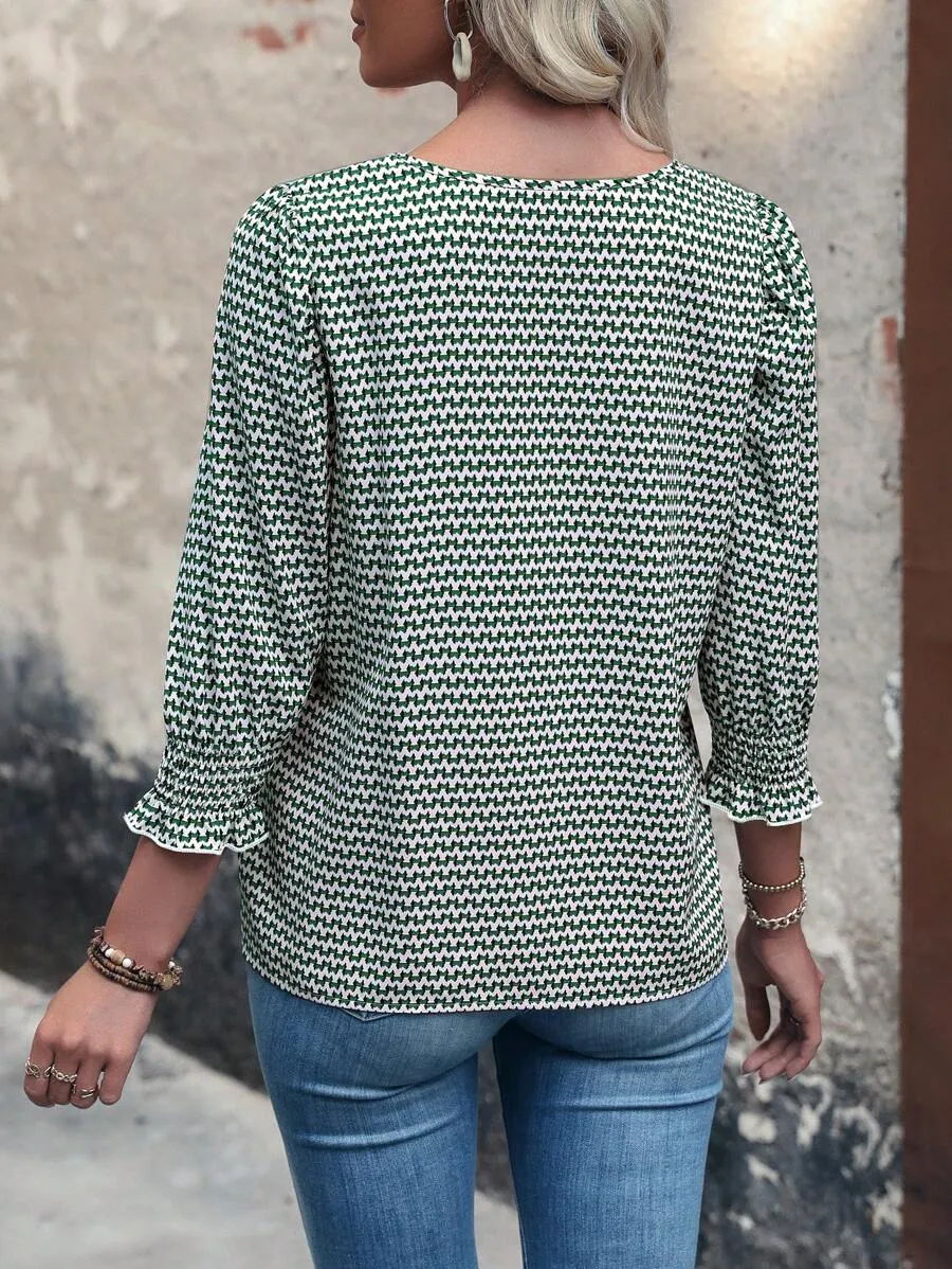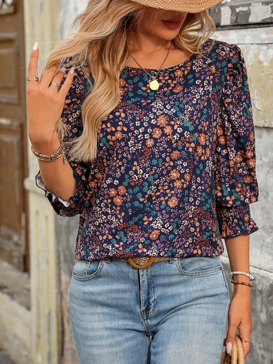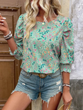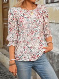 Women's Vacation Style Printed Three Quarter Sleeve Tops