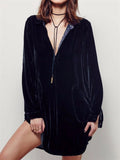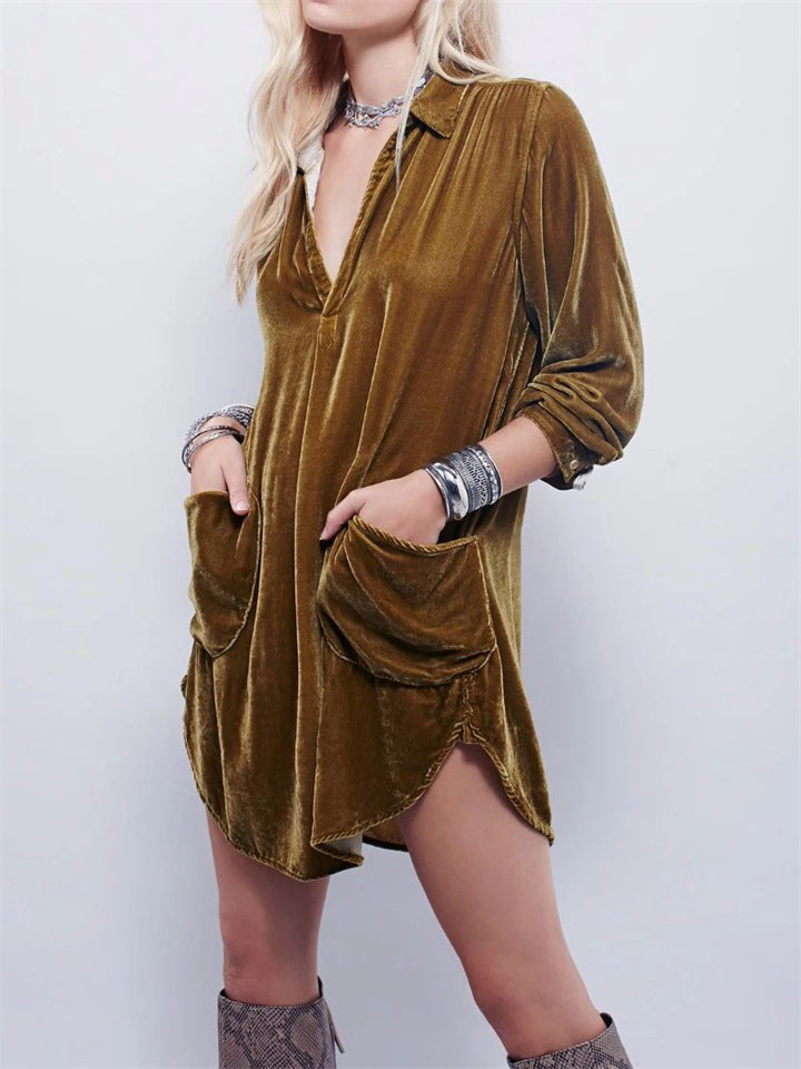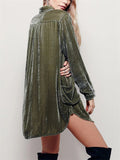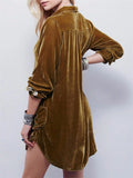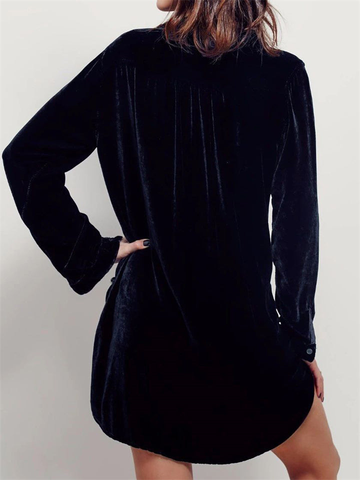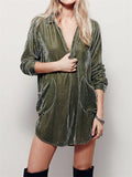 Women's Velvet Sexy V Neck Irregular Hem Mini Shirt Dress