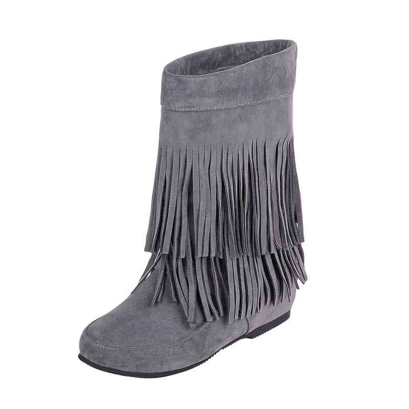 Women'S Vintage Matte Suede Double-Tassel Boots