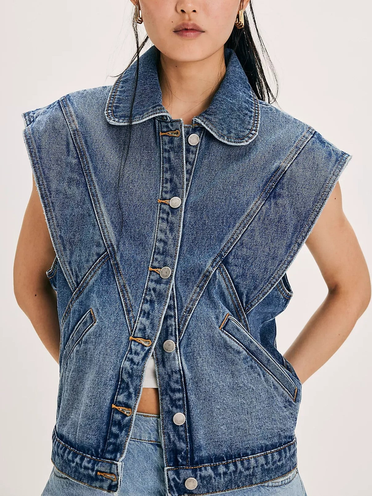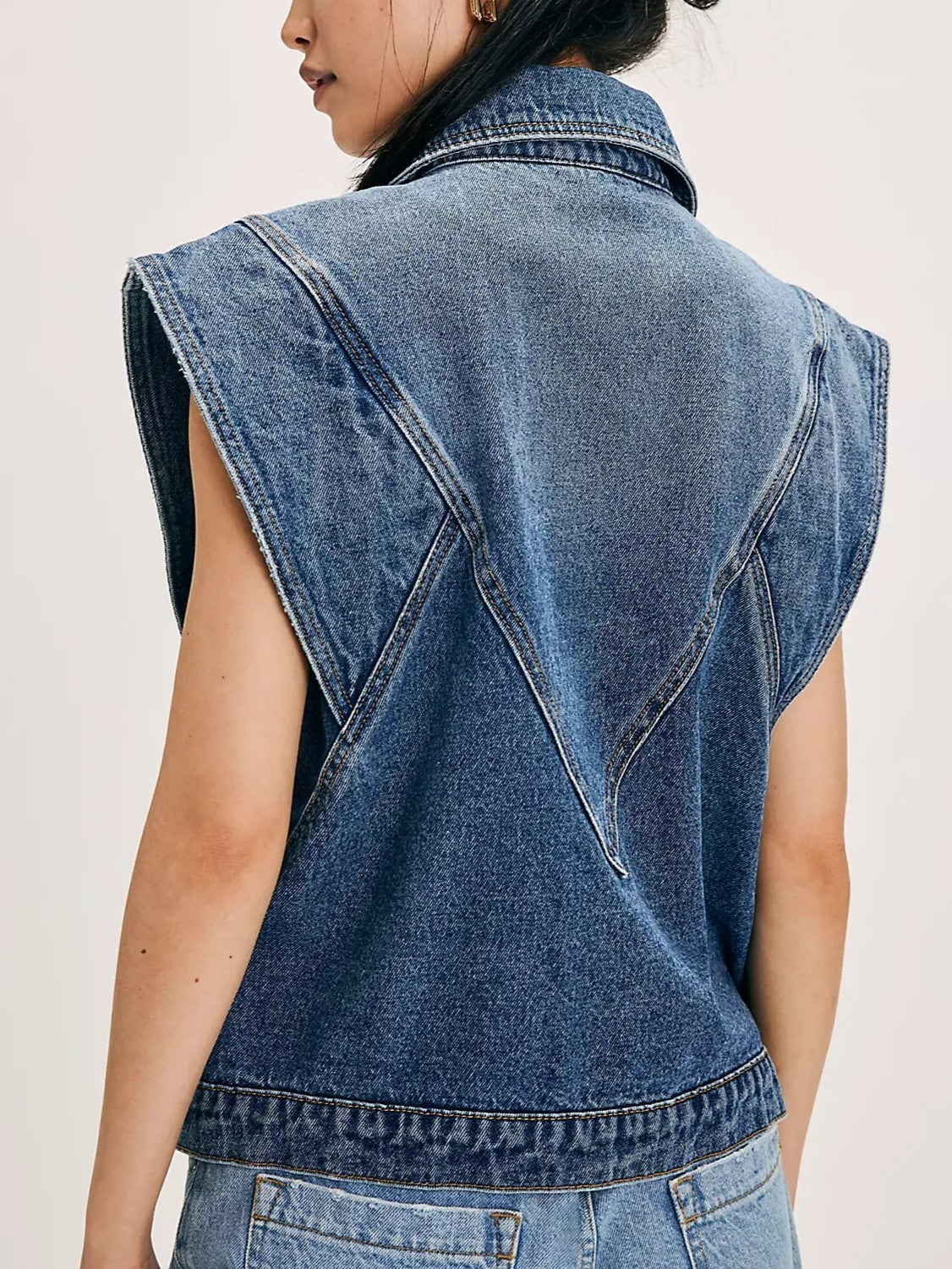 Effortlessly elevate your style with this women’s vintage oversized denim sleeveless vest. Crafted from retro washed denim, its unique cut and winged sleeves offer fashionable versatility for casual outings or light commutes.