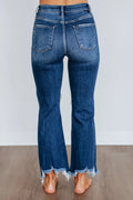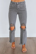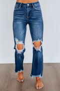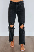 Women's Washed Ripped High Waist Raw Hem Jeans