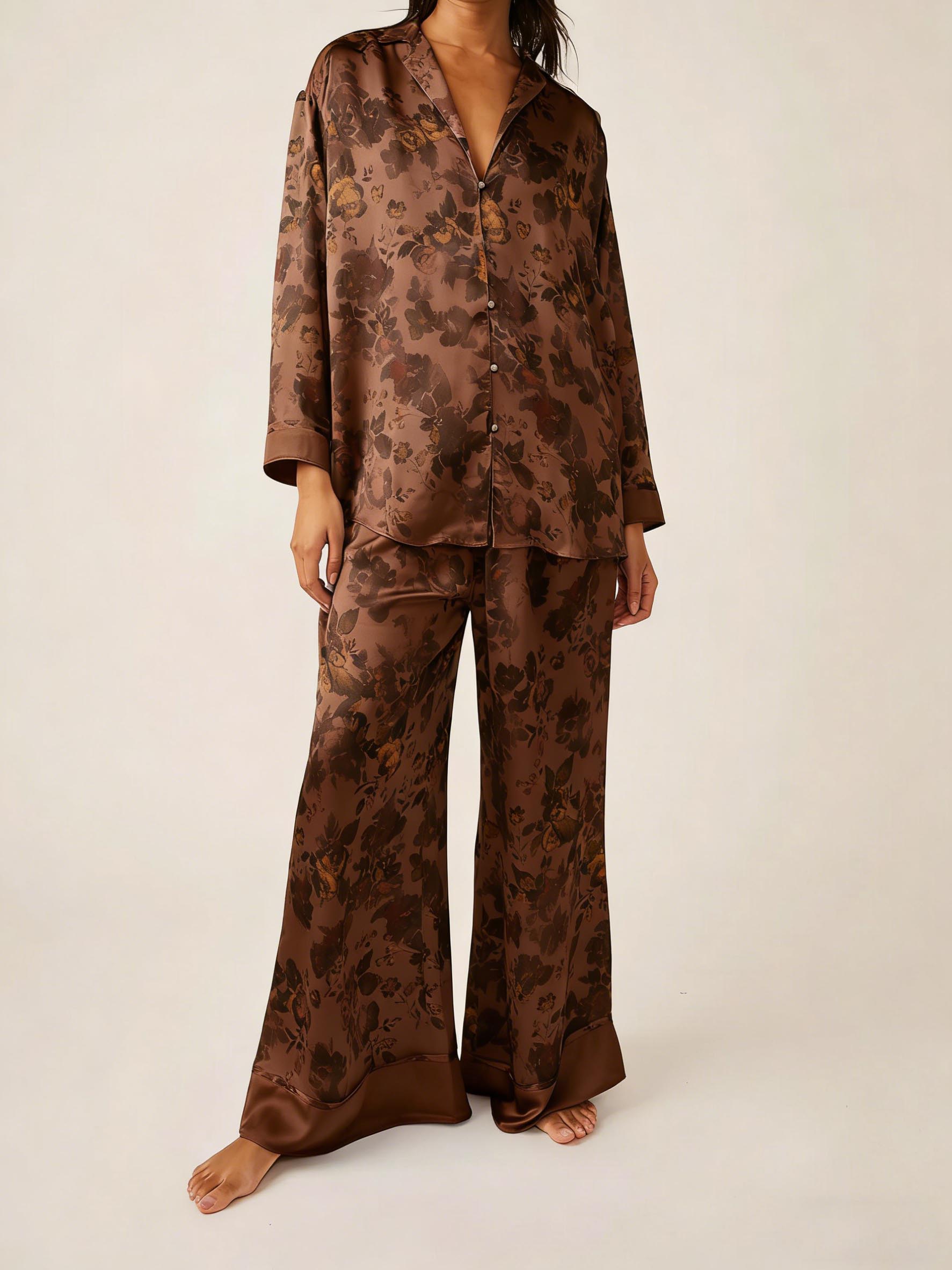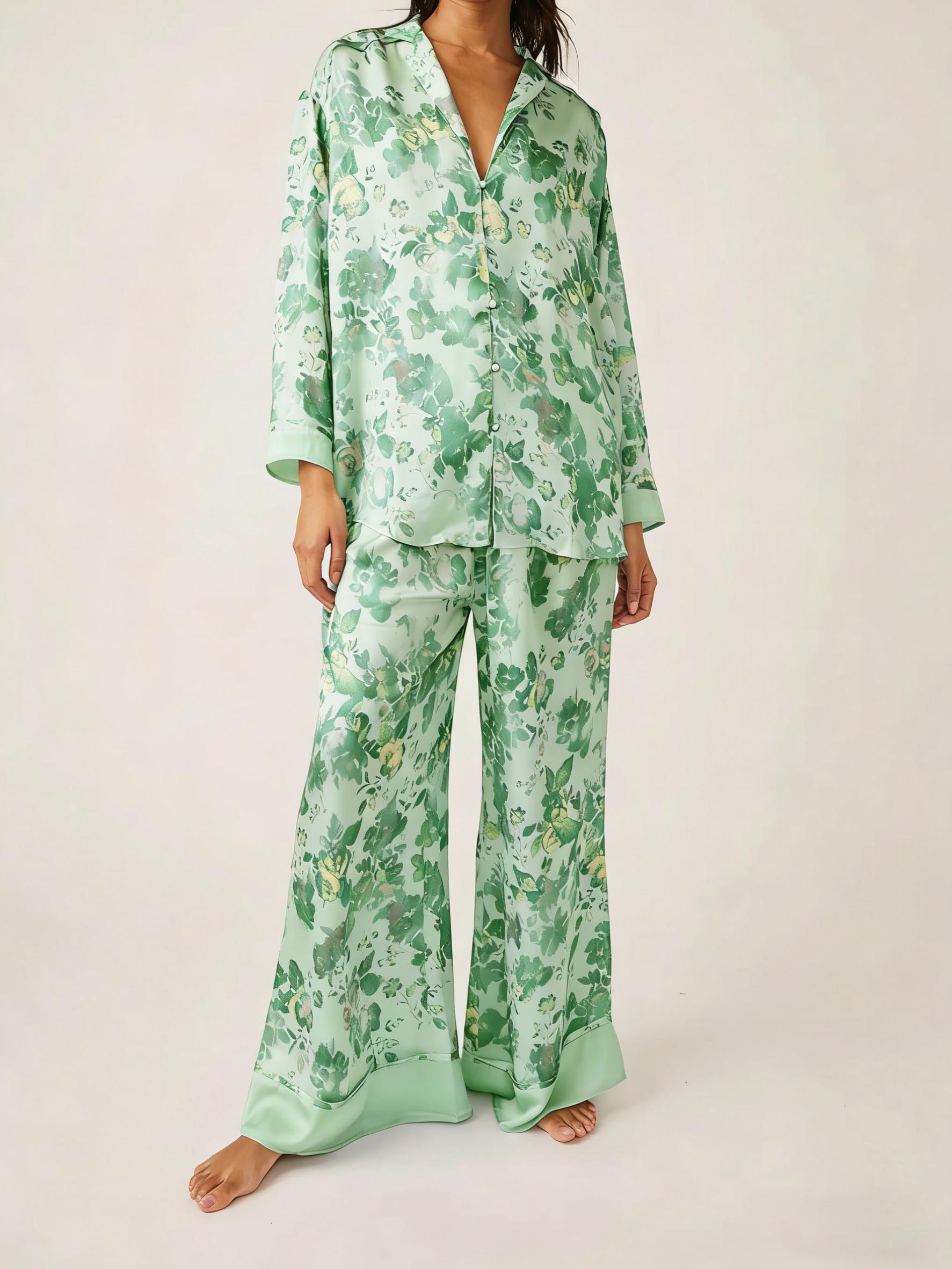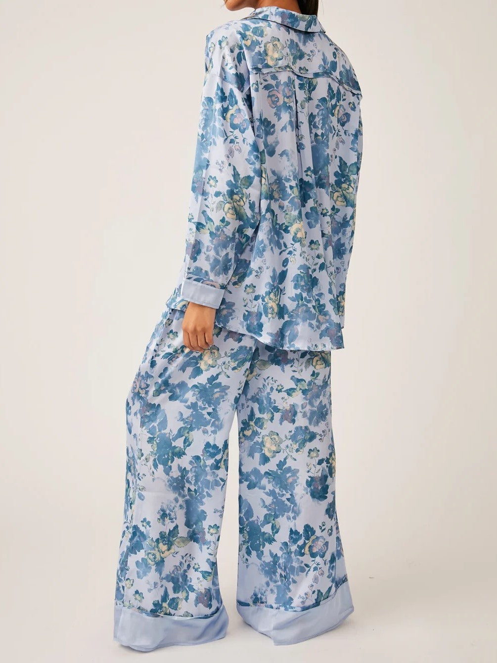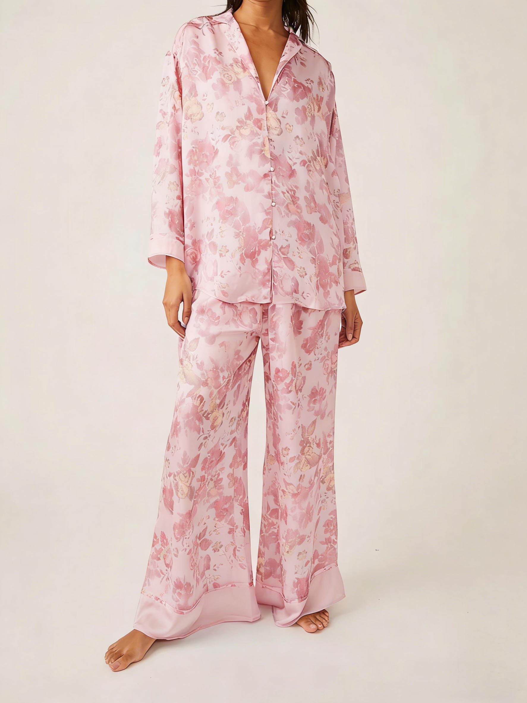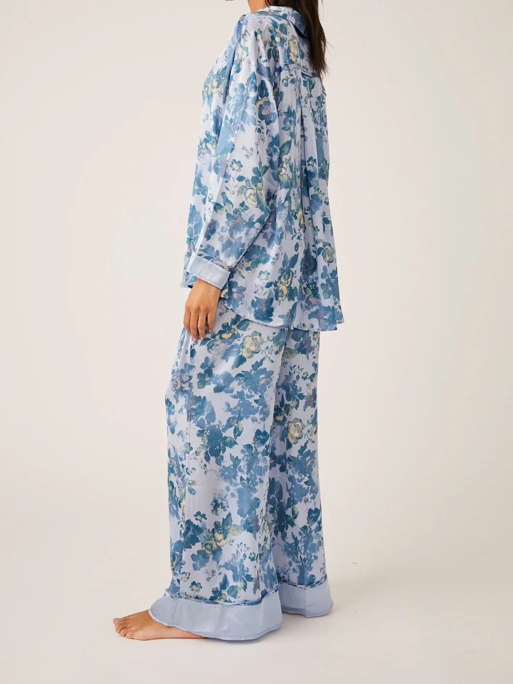 Experience refined comfort with the Women's Watercolor Bloom Silky Pajama Set. Its smooth, softly lustrous fabric drapes elegantly, while the ink-wash floral print exudes understated French-inspired romance. Monochromatic piping elevates each detail, delivering effortless sophistication.