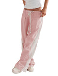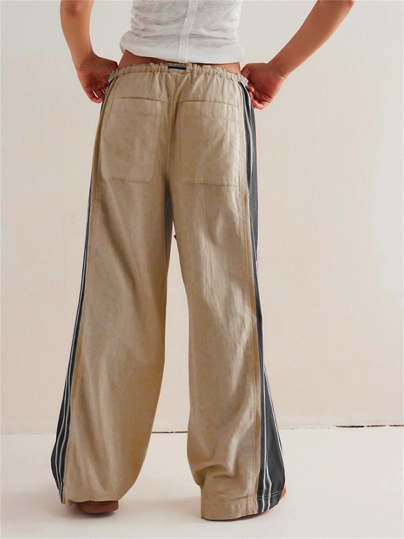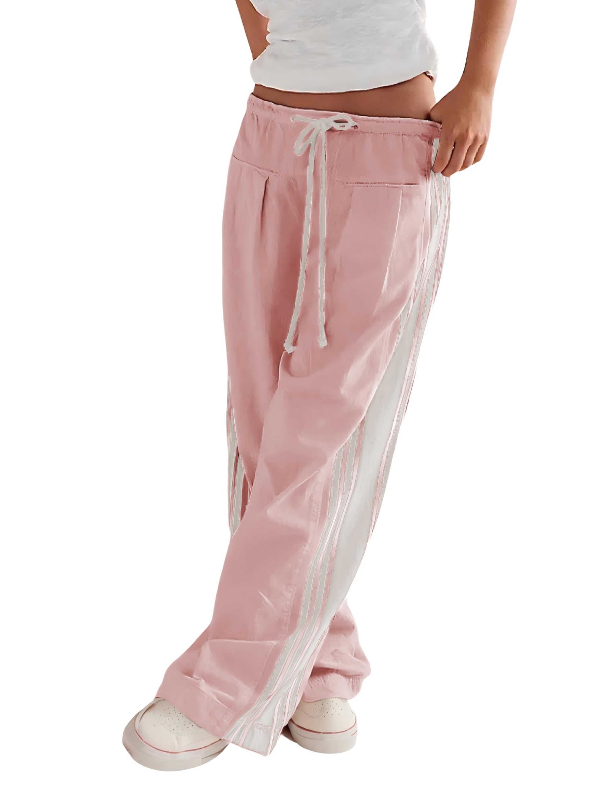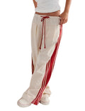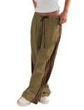 Women's Wide Leg Pants Drawstring High Rise Side Striped Slouchy Palazzo Pants with Pockets
