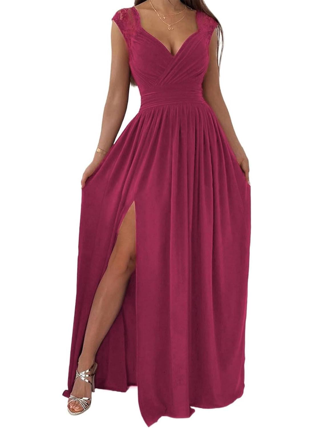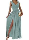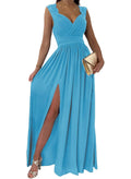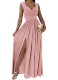 Women's Wrap V-Neck Lace Strap Ruched Sexy Maxi Dress