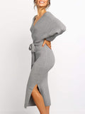 Women's Wrap V Neck Slit Sweater Dresses