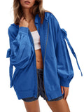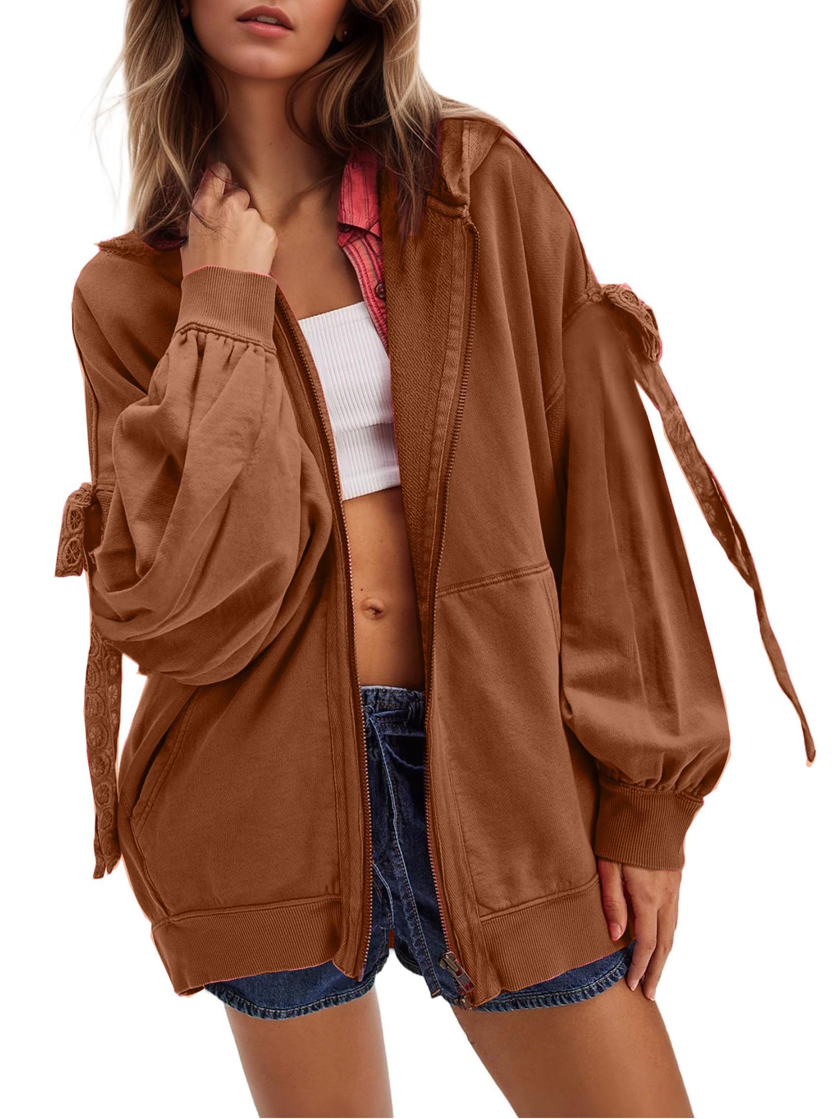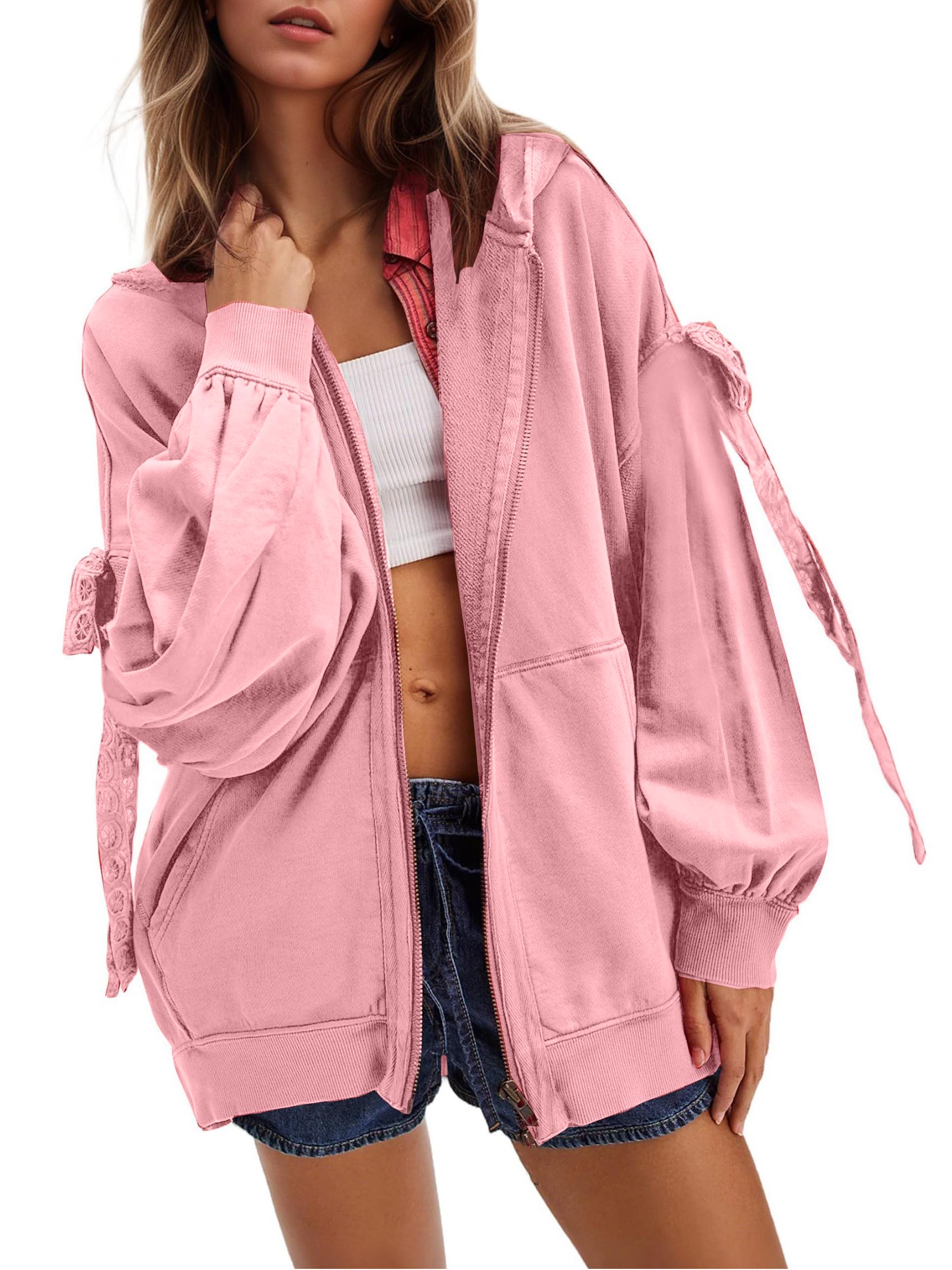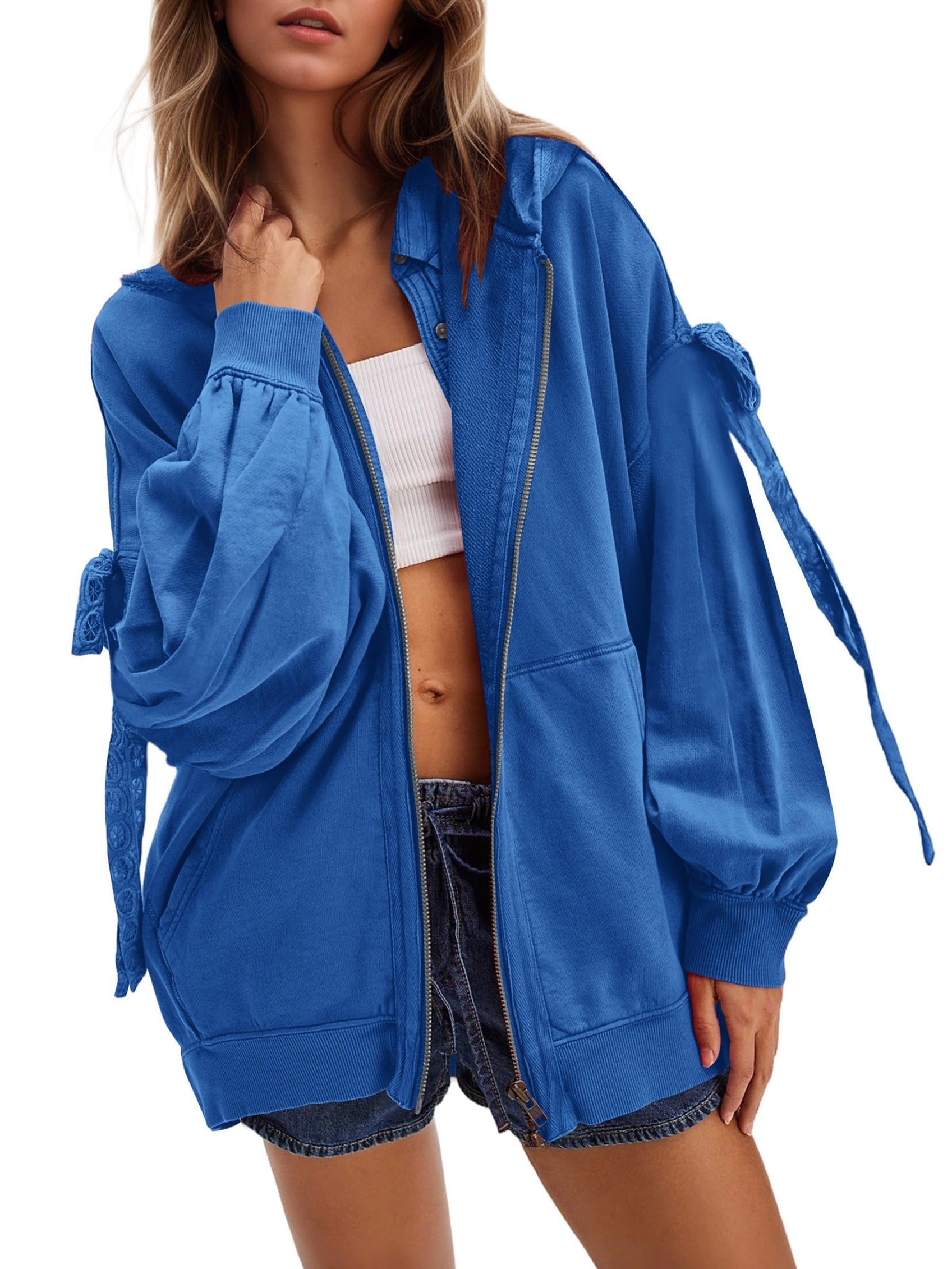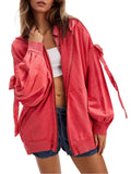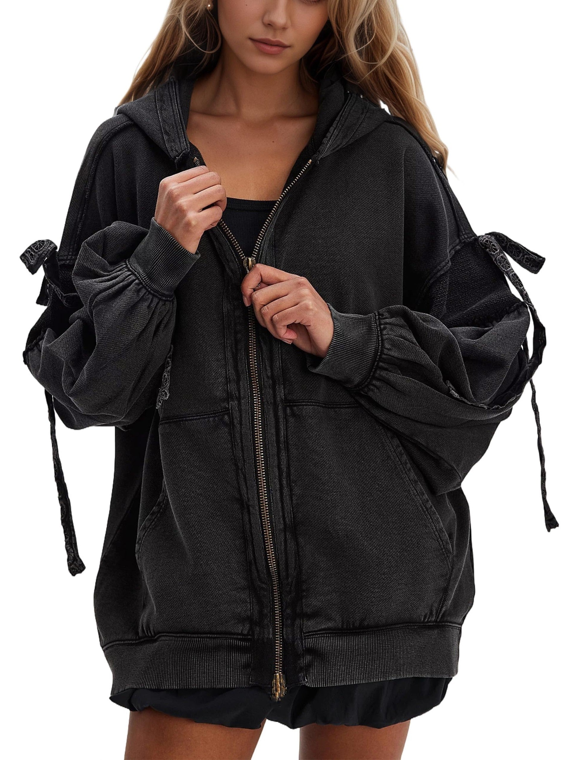 Women's Zip Up Hoodies with Pockets Stylish Bow Tie Long Sleeve Sweatshirt Jackets