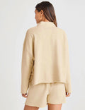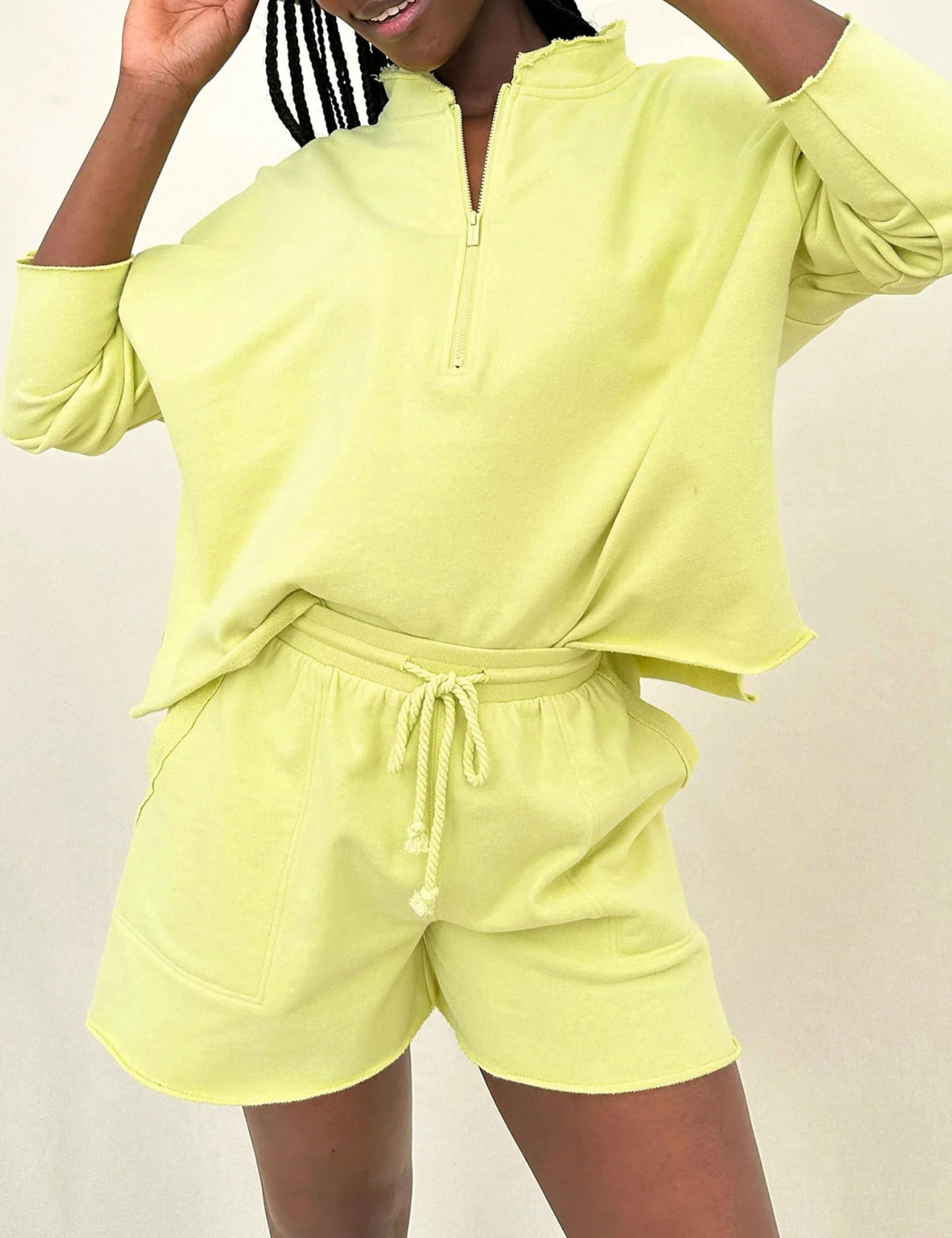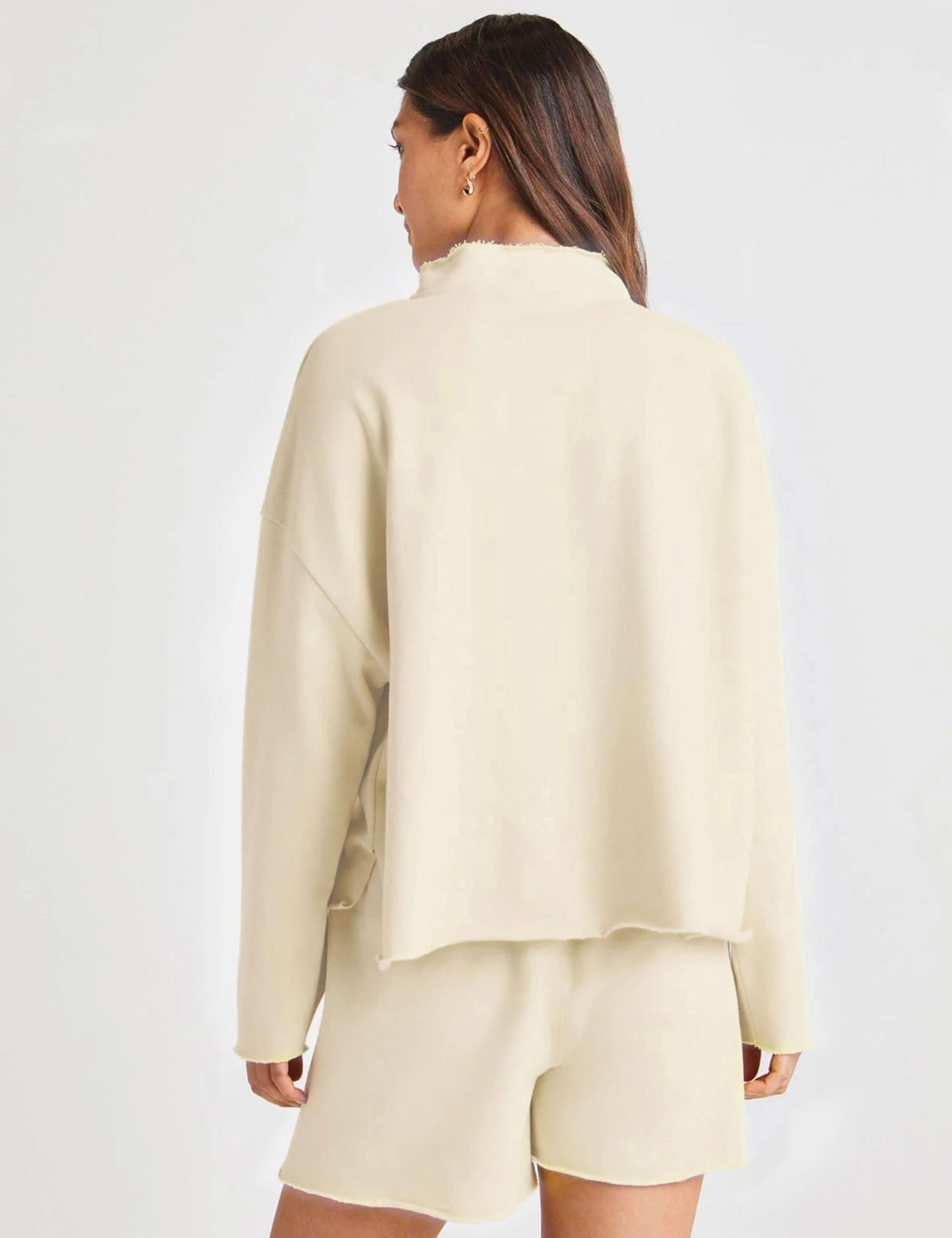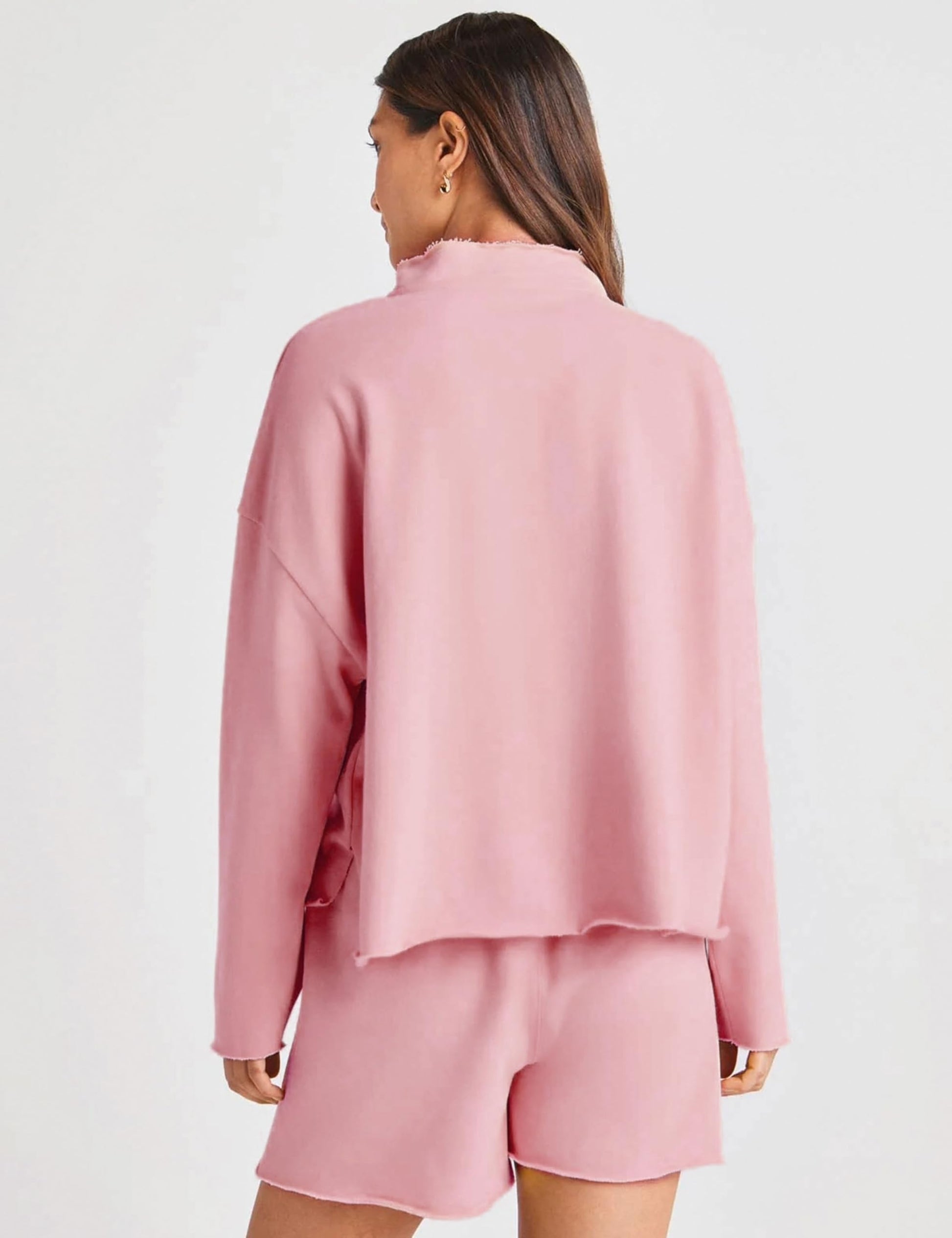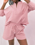 Women's Zip-up Long Sleeve Pullover and Drawstring Shorts Leisure Set