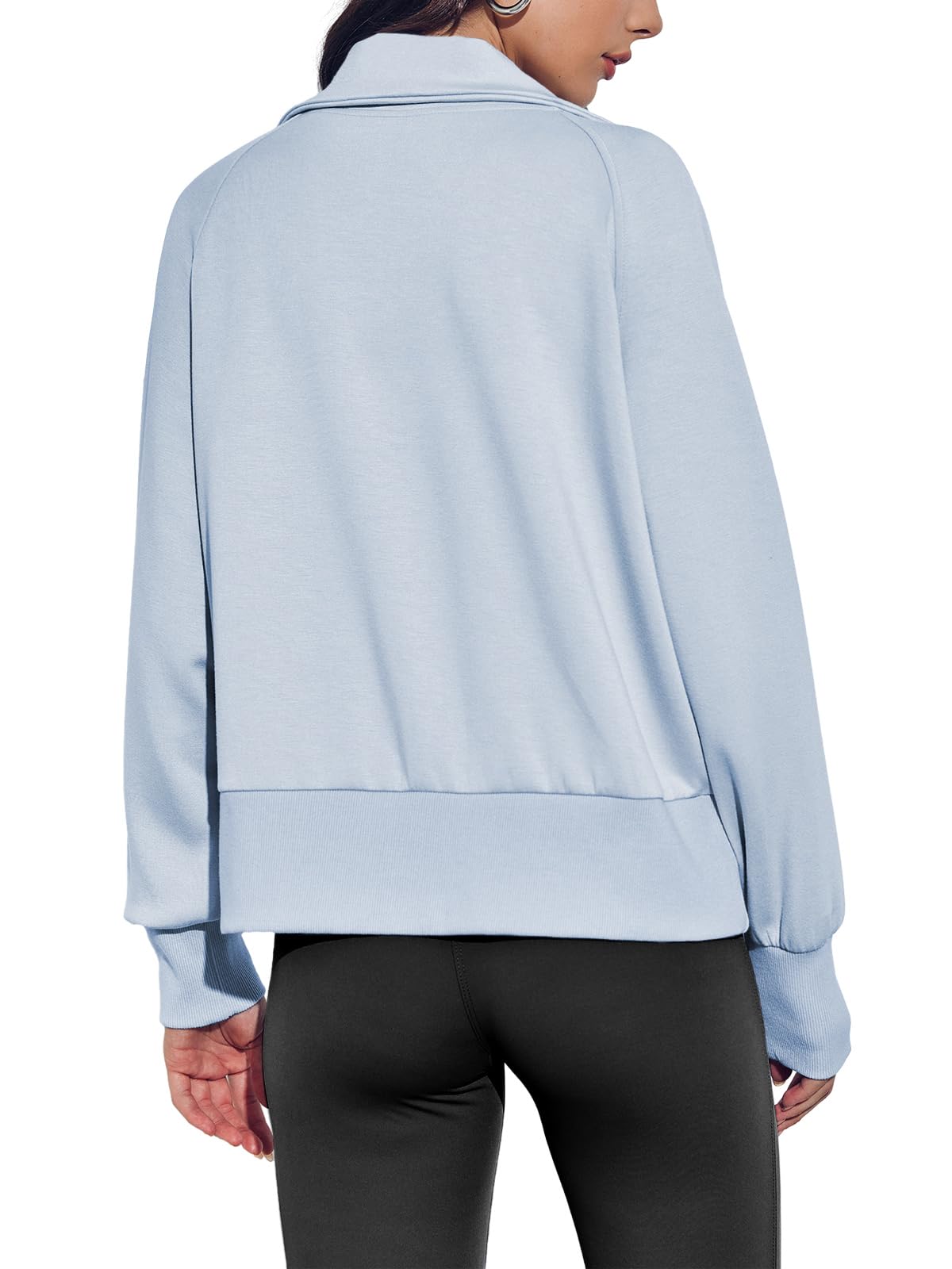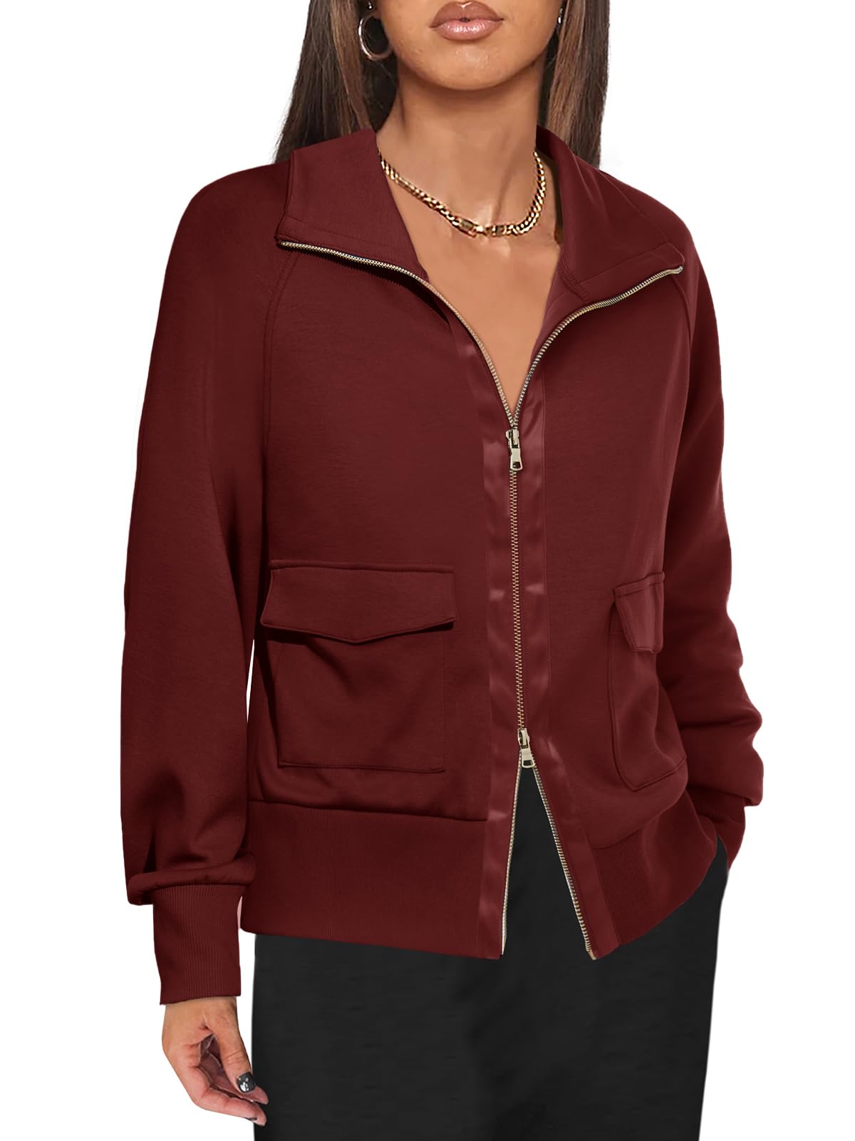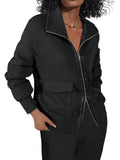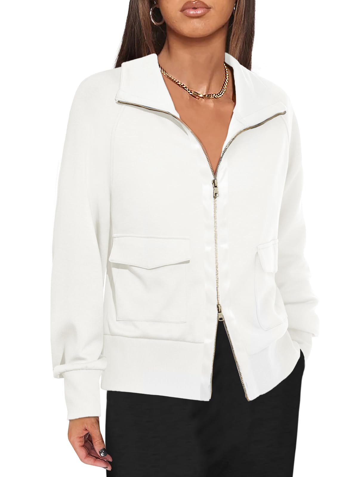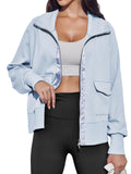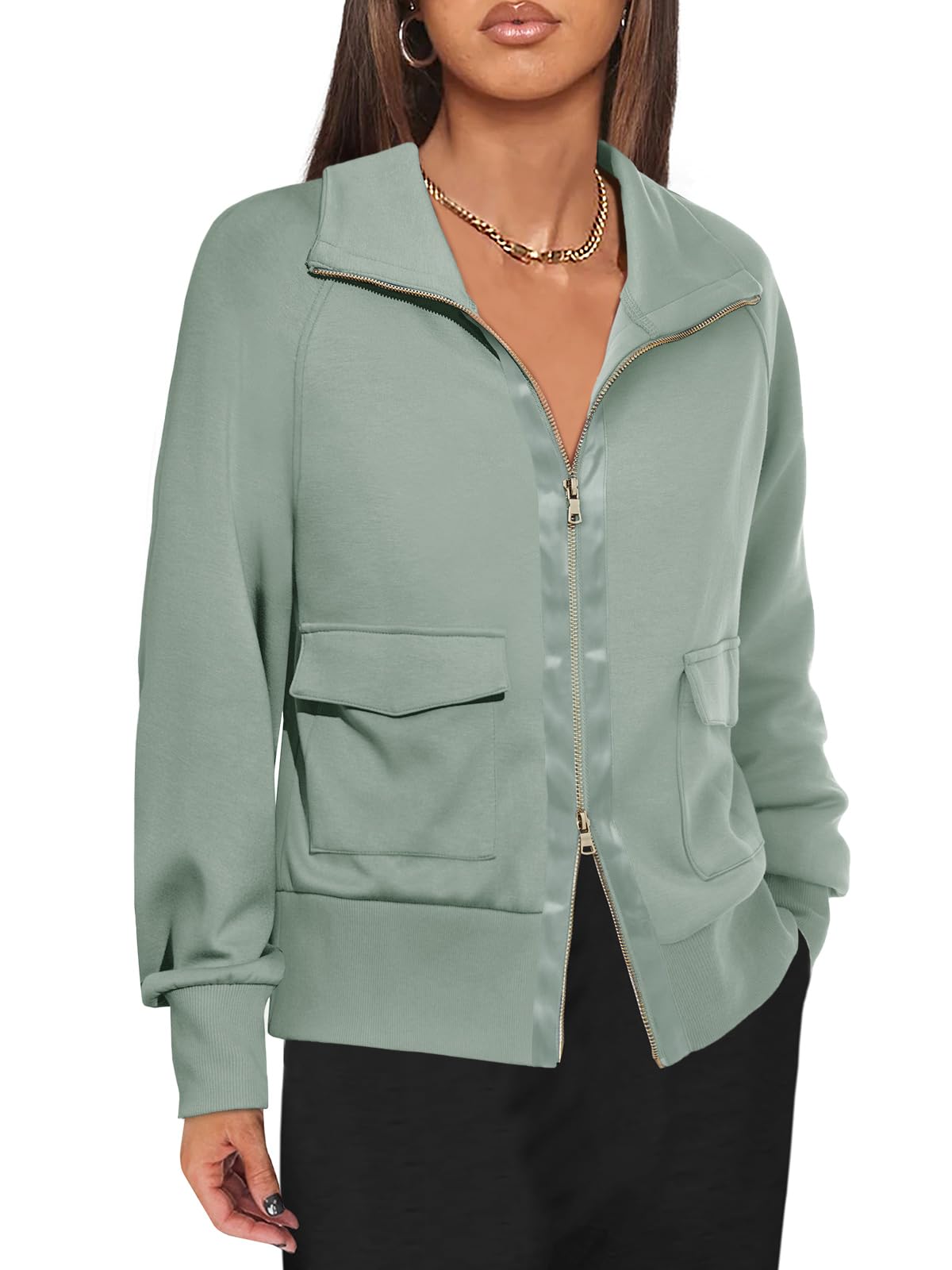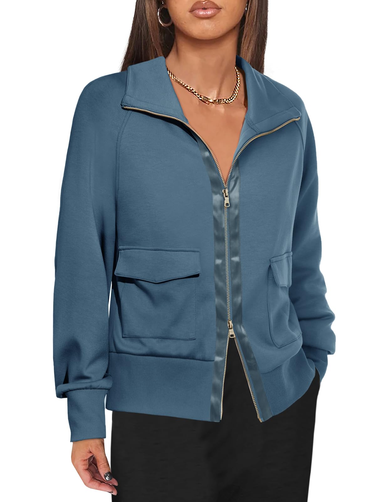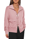 Women's Zip up Sweatshirt Collared Neck Long Sleeve Loose Casual Lightweight Jacket
