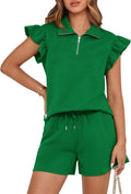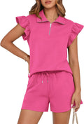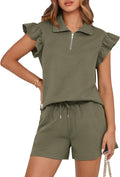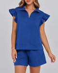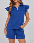 Elevate your loungewear game with our Casual Zipper V Neck Ruffle Shorts Sets. Perfect for relaxing in style or running errands, this trendy ensemble offers comfort and elegance in one. Upgrade your wardrobe today!